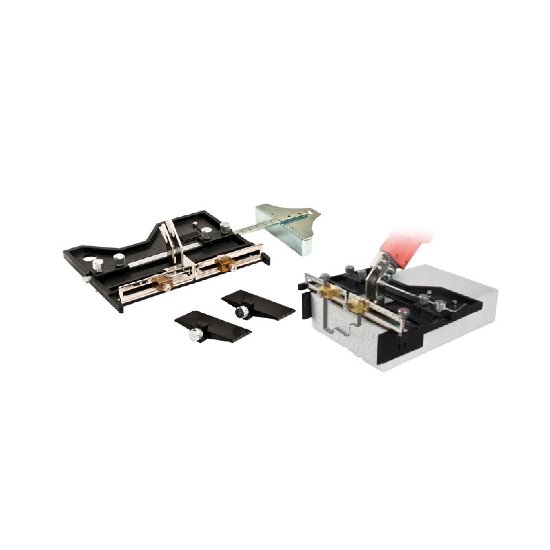 Ferramentas de precisão mecânica com suportes metálicos e plásticos em preto e detalhes metálicos dourados