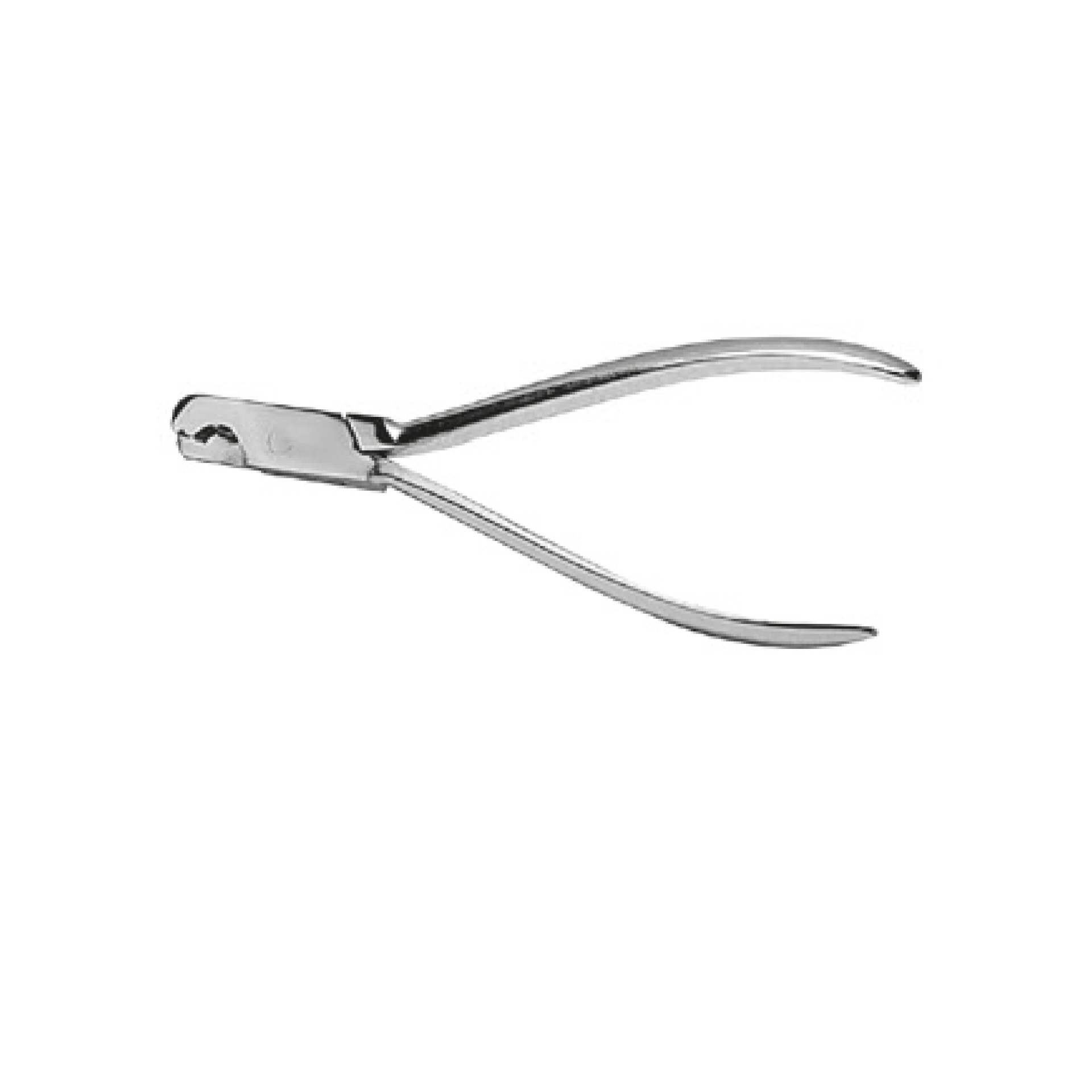 Alicate pequeno metálico prateado com cabo curvado
