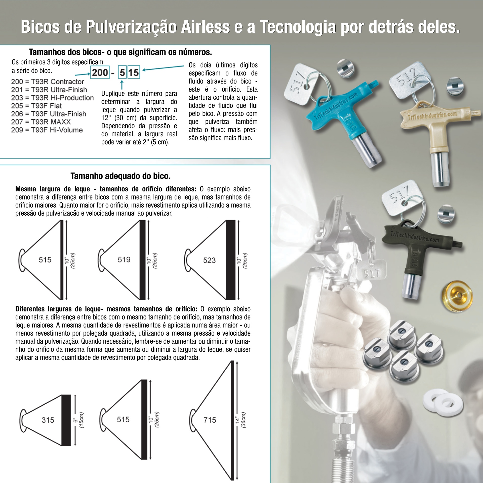 Para utilização com revestimentos muito pesados ​​que exigem a máxima pressão para atomizar adequadamente o revestimento. Disponível em 107 combinações de largura de leque e tamanho de orifício.