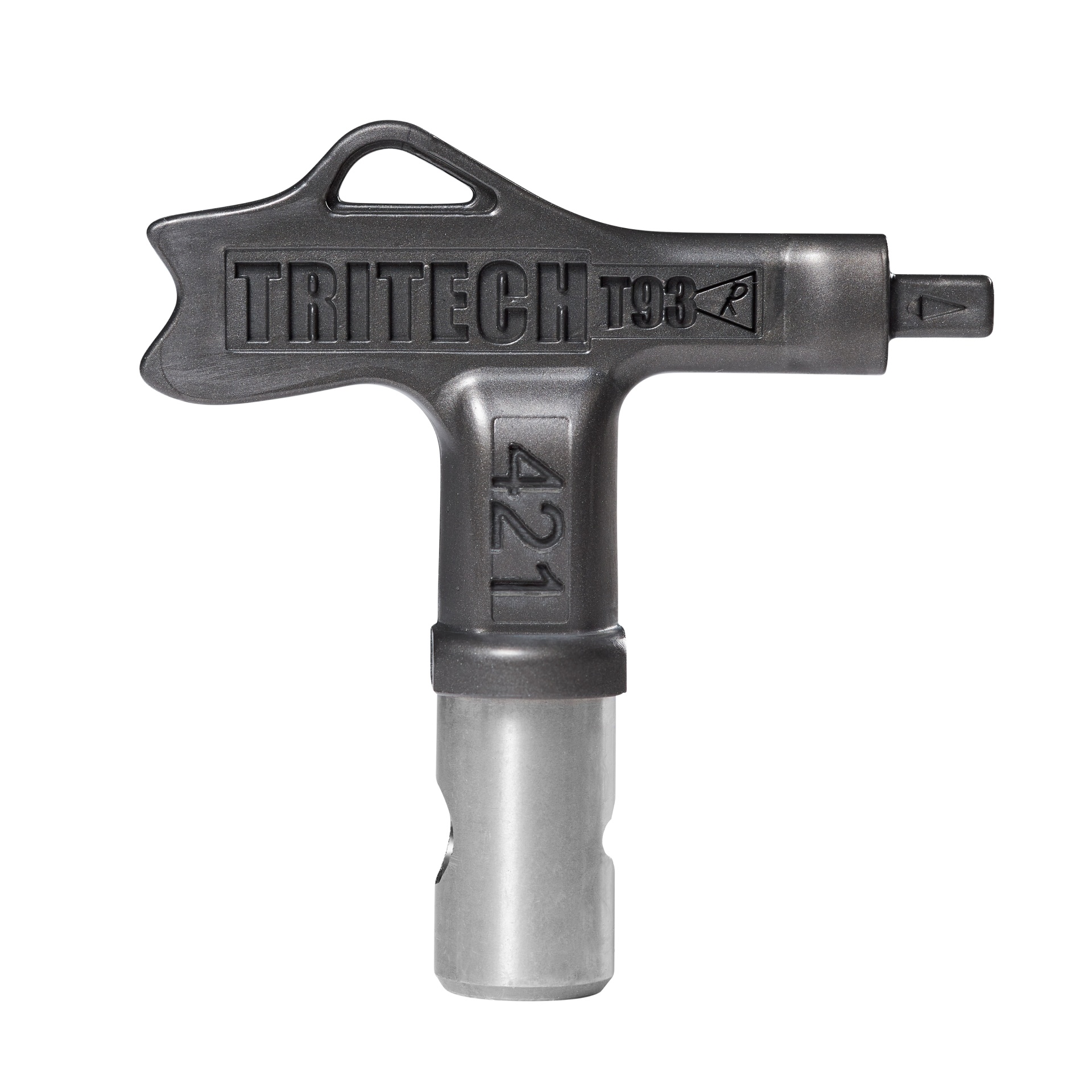 Chave de metal cinzenta com texto TRITECH T93 421