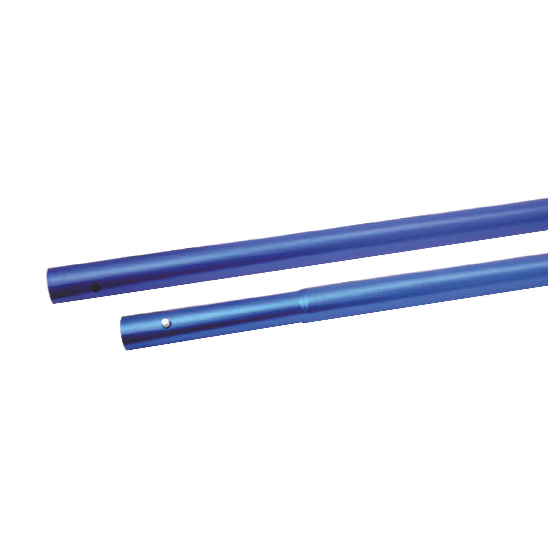 Dois tubos metálicos azuis com acabamento liso