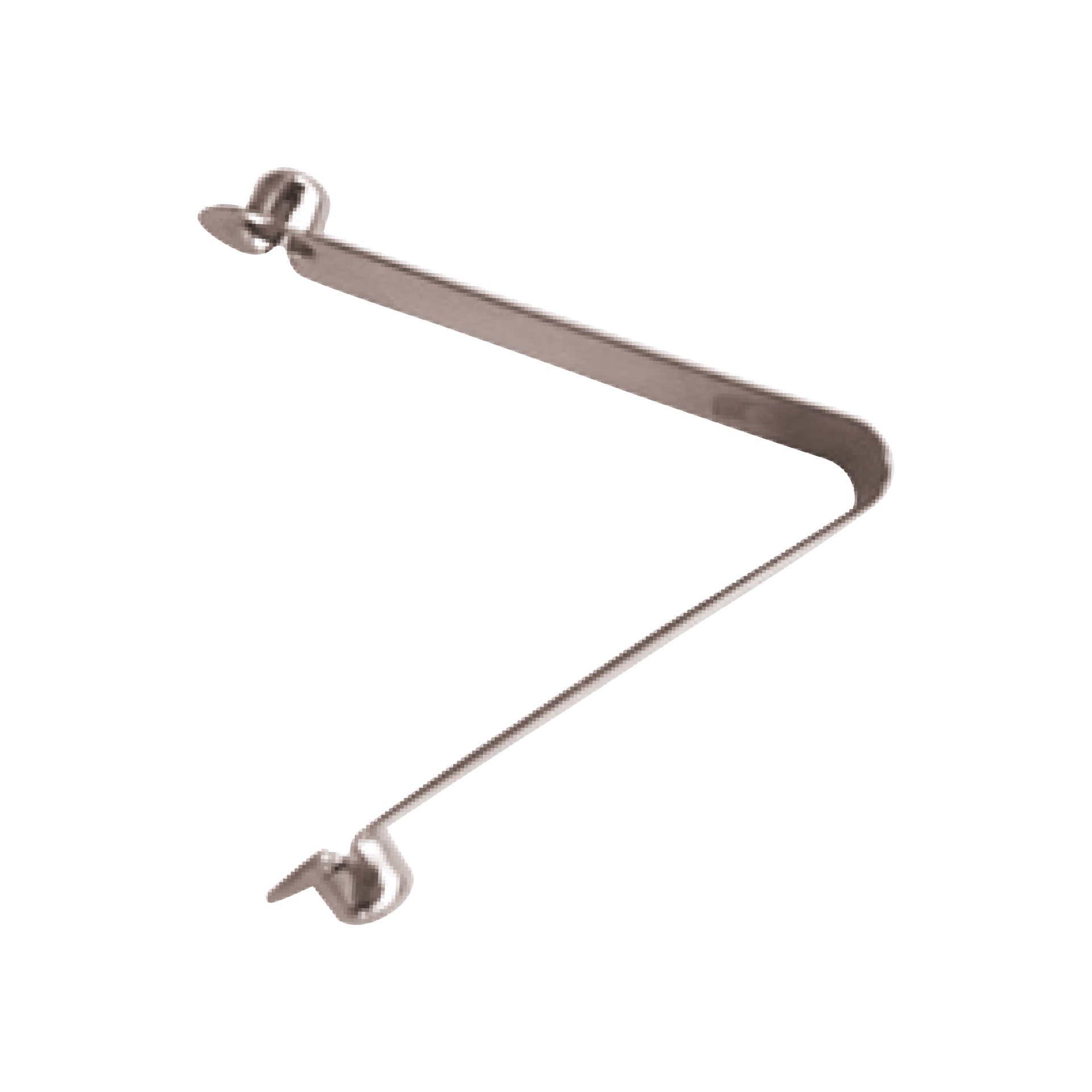 Suporte metálico triangular em aço inoxidável com extremidades curvas