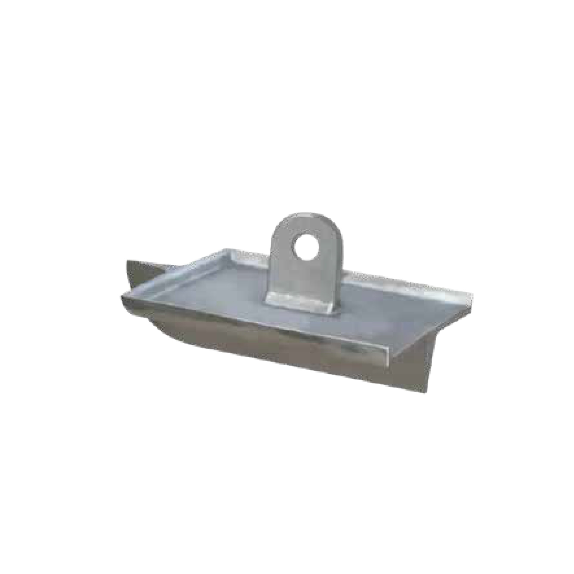 Suporte metálico cinzento com aba central e orifício circular