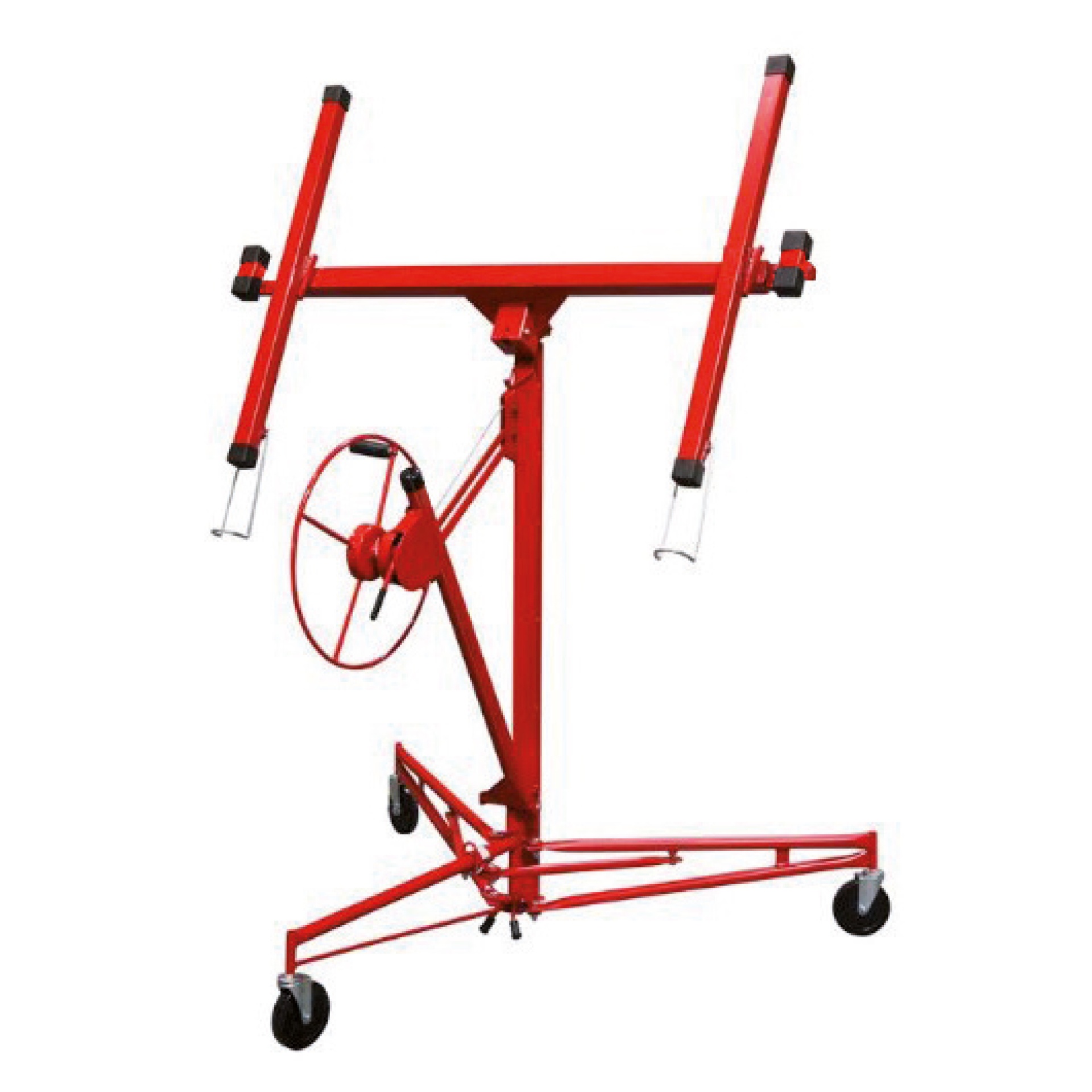 Suporte elevatório metálico vermelho para placas com rodas e ajuste de altura
