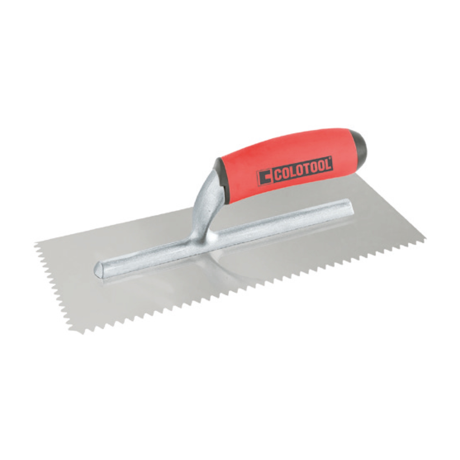 Espátula dentada COLOTOOL com cabo vermelho e preto e lâmina metálica