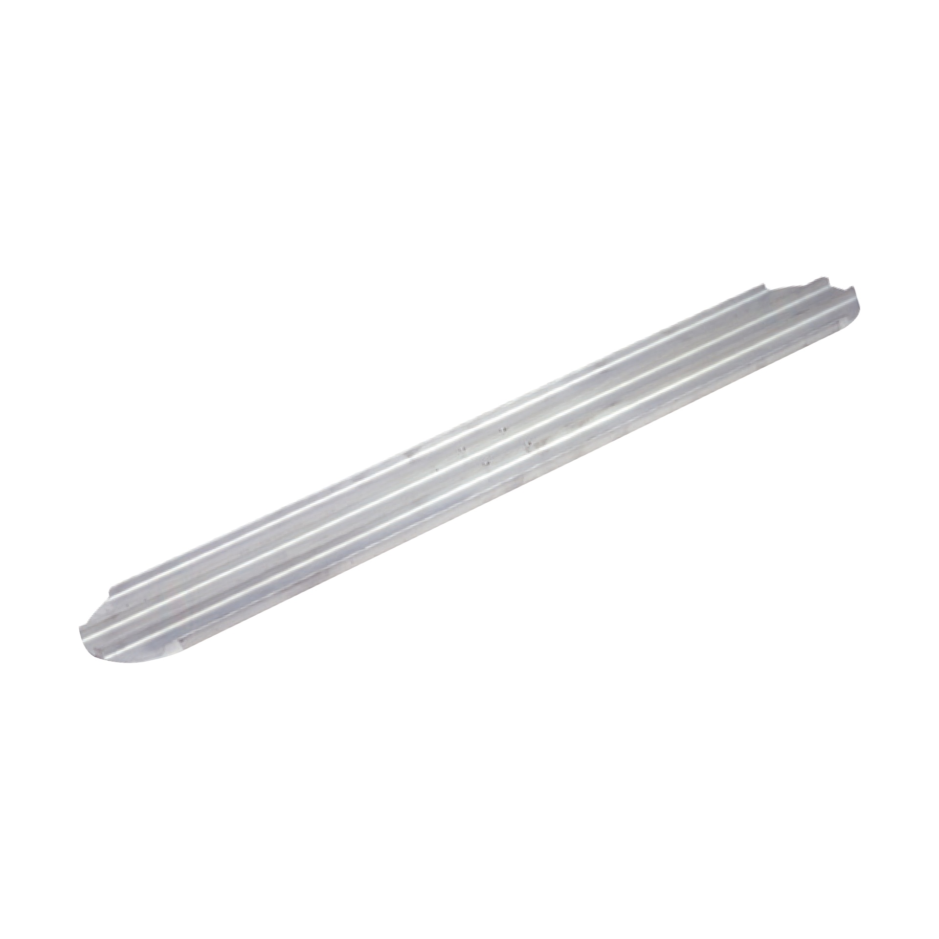 Perfil metálico prateado alongado com ranhuras longitudinais