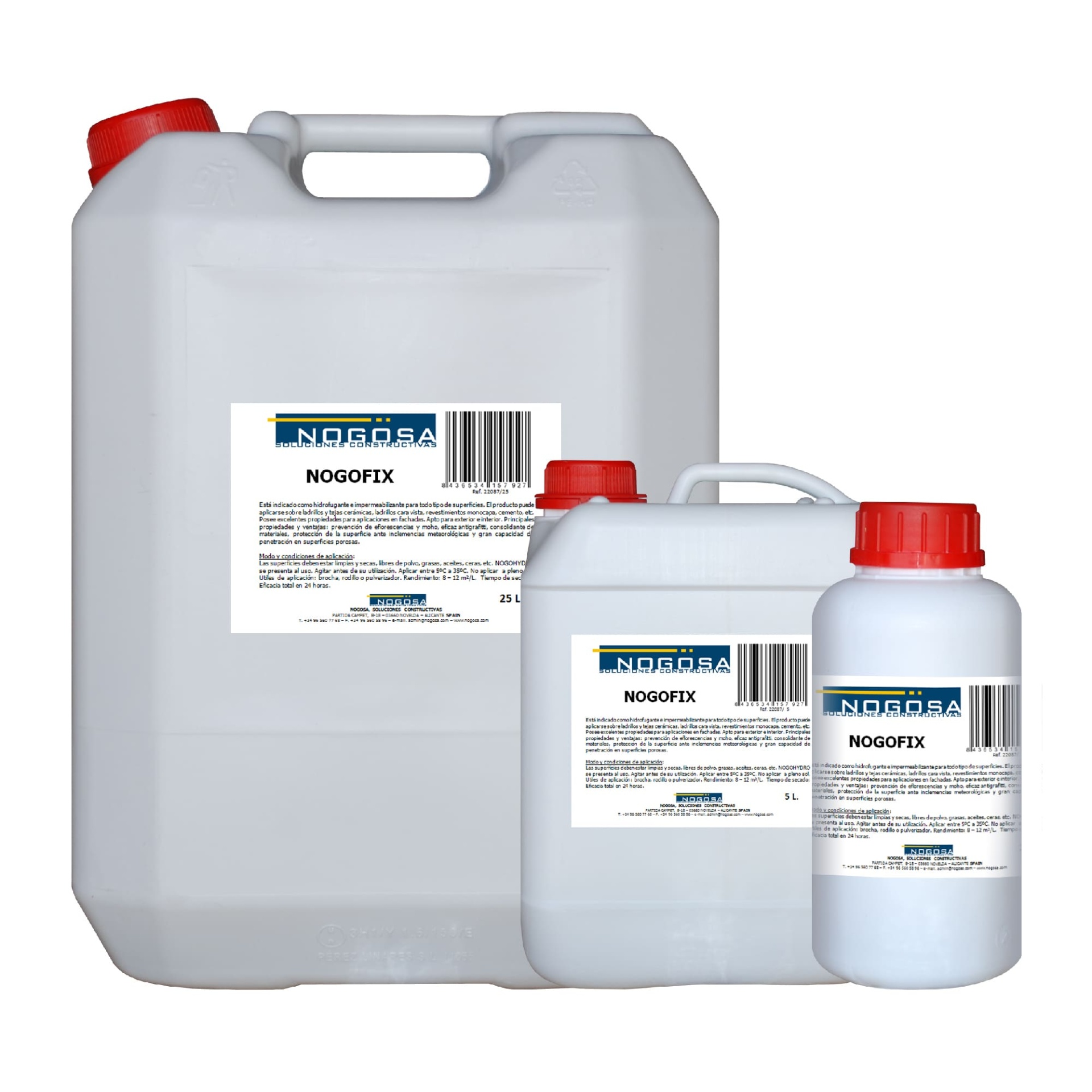 Recipientes plásticos brancos com tampas vermelhas do produto NOGOFIX