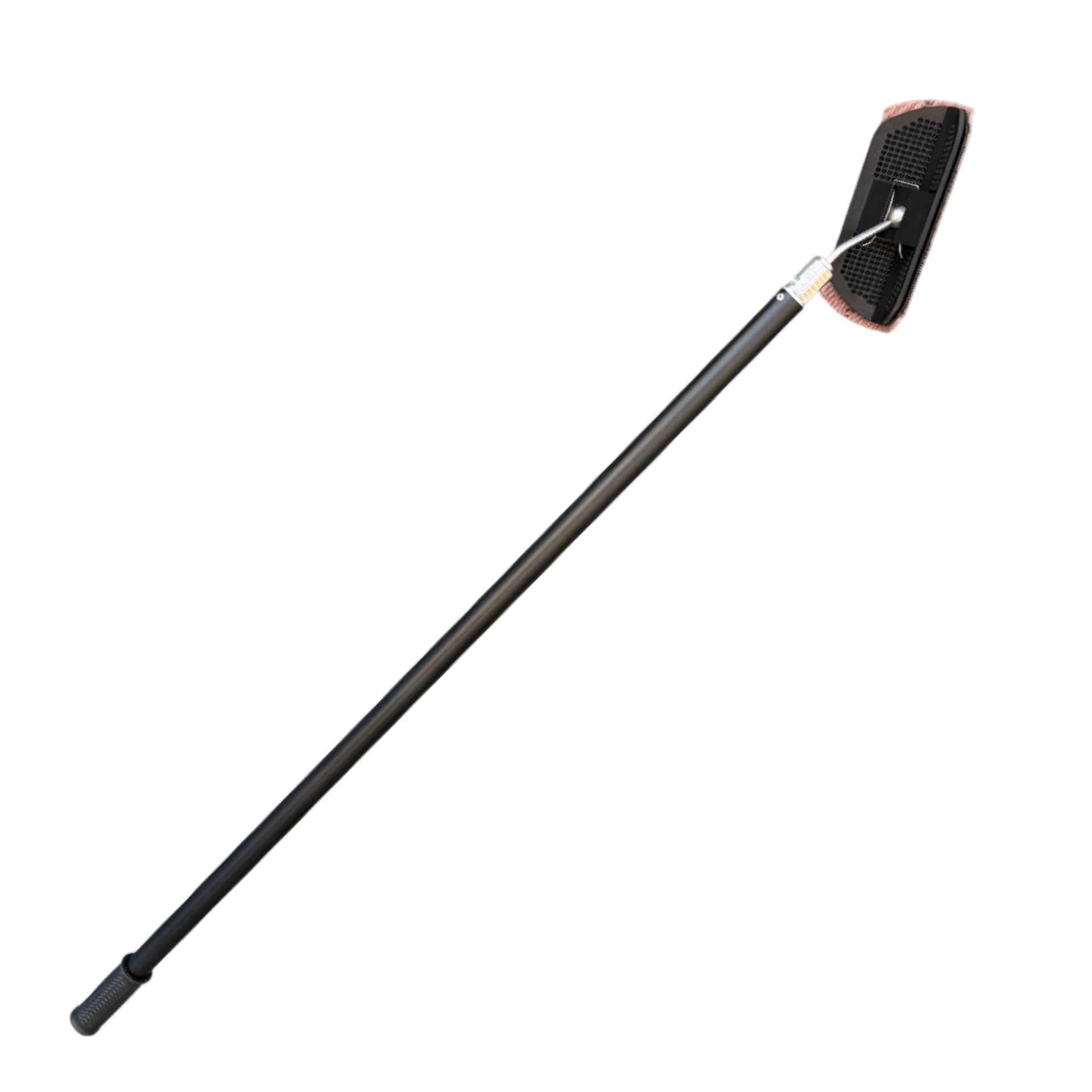 Mopa com cabo longo preto e cabeça retangular com tecido rosa