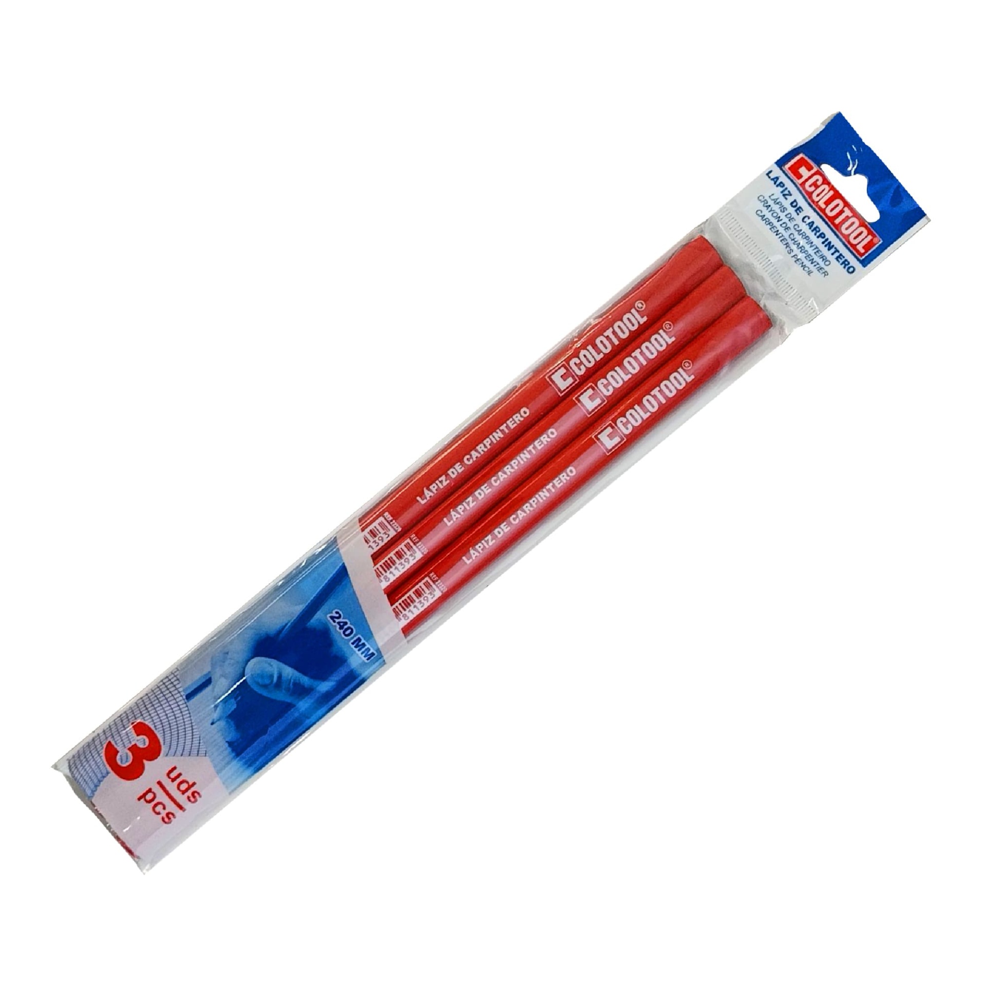 Três lápis carpinteiro vermelhos GELOTOOL em embalagem plástica