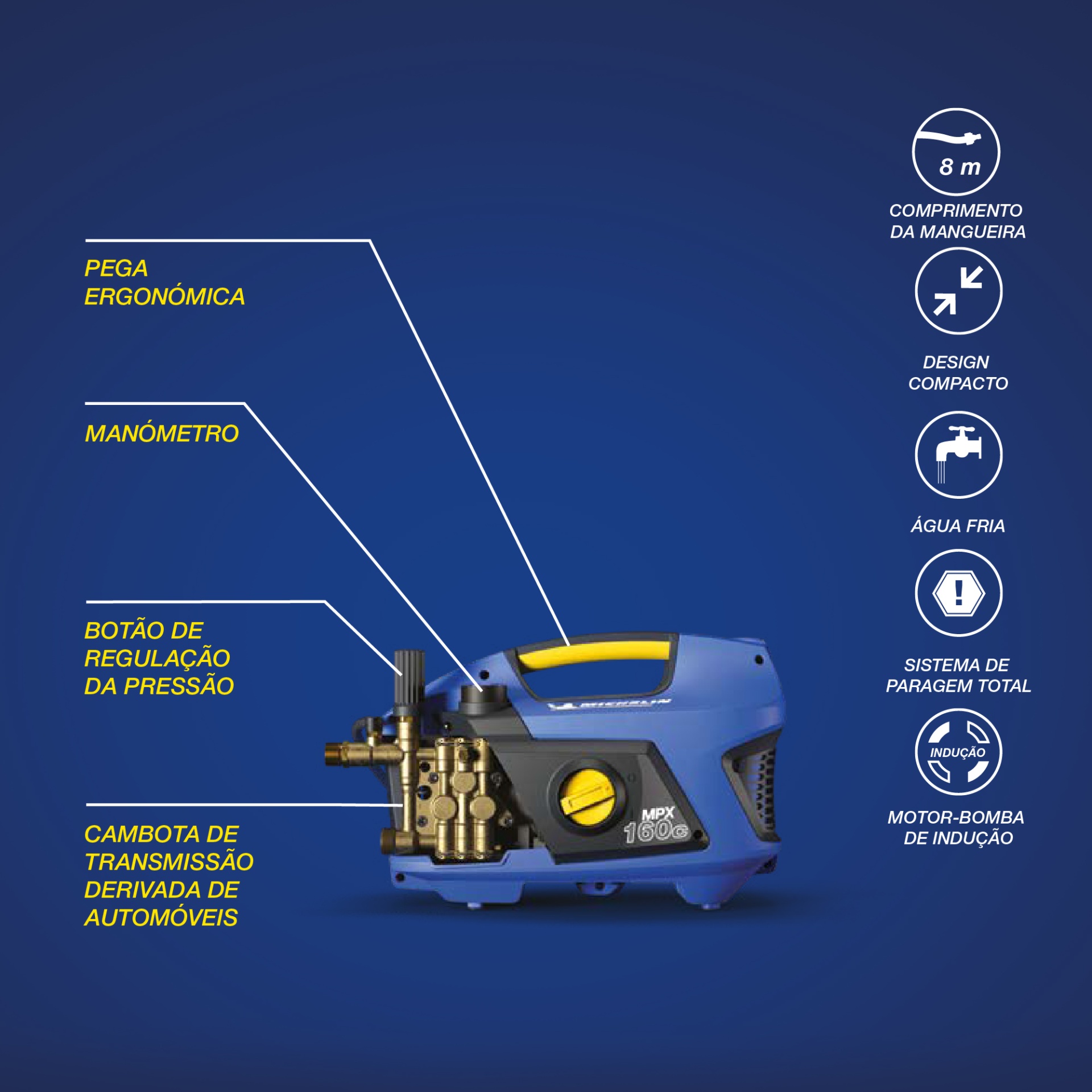 - 3 pistões com revestimento cerâmico e sistema de cambota de transmissão