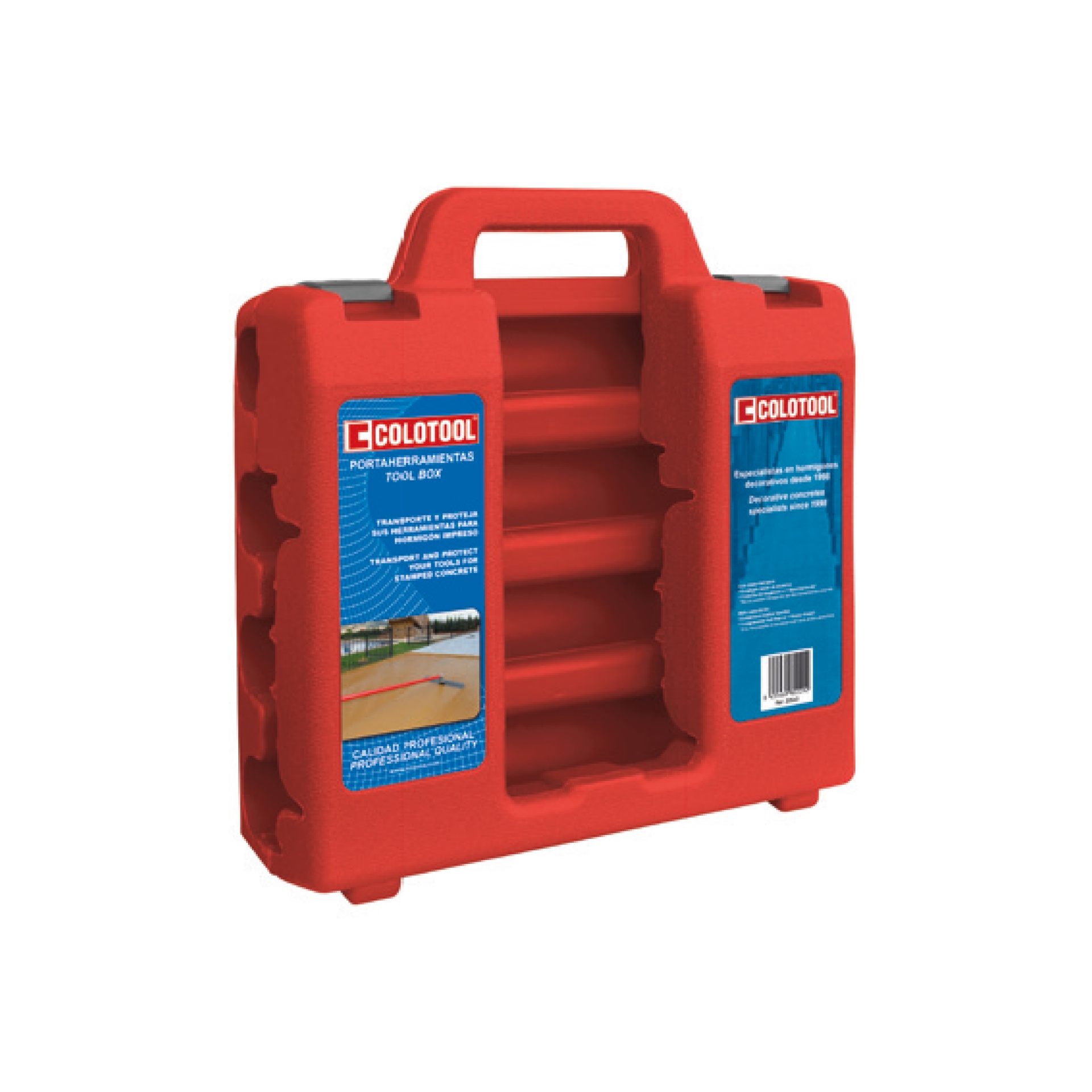 Mala rígida vermelha para ferramentas da marca COLOTOOL com rótulos azuis.