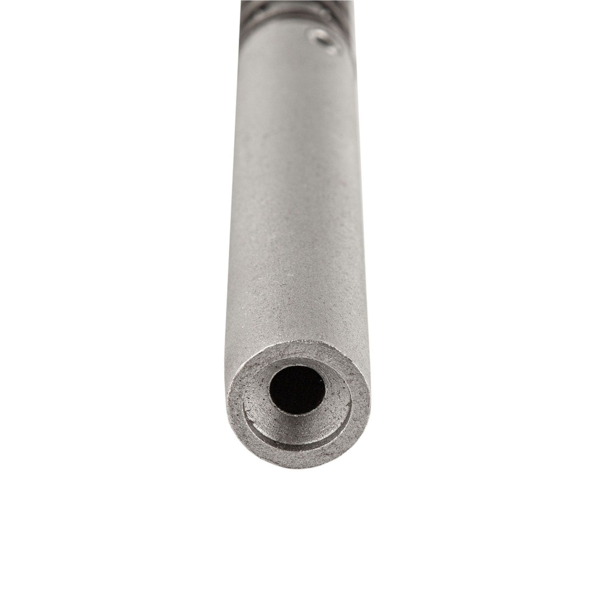 ferramenta metálica tubular com eixo sobre superfície cinzenta granulada