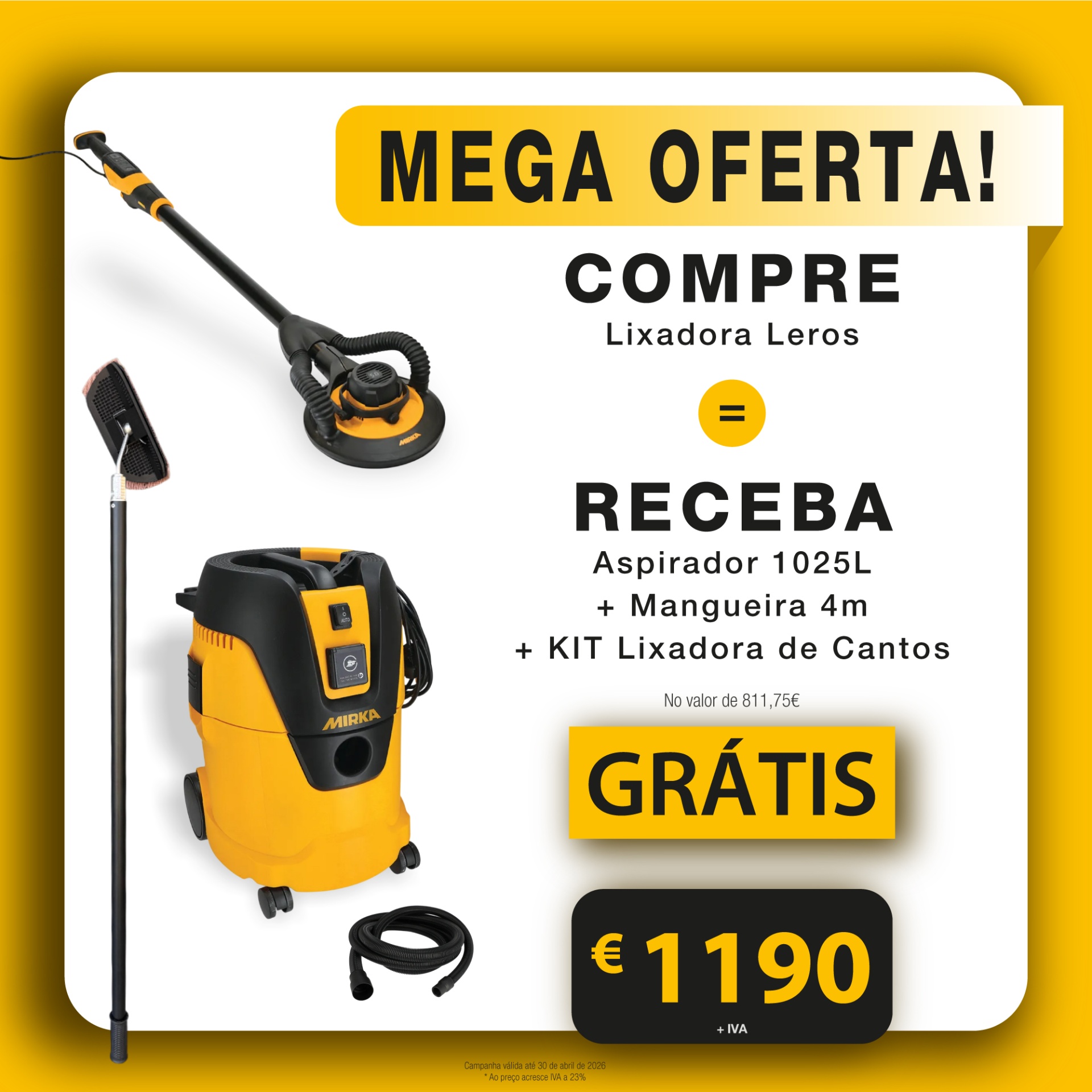 Na compra da Lixadora Mirka® LEROS 950CV, receba um Aspirador Mirka® 1025L e Mangueira 4m + KIT Lixadora de Cantos🎁