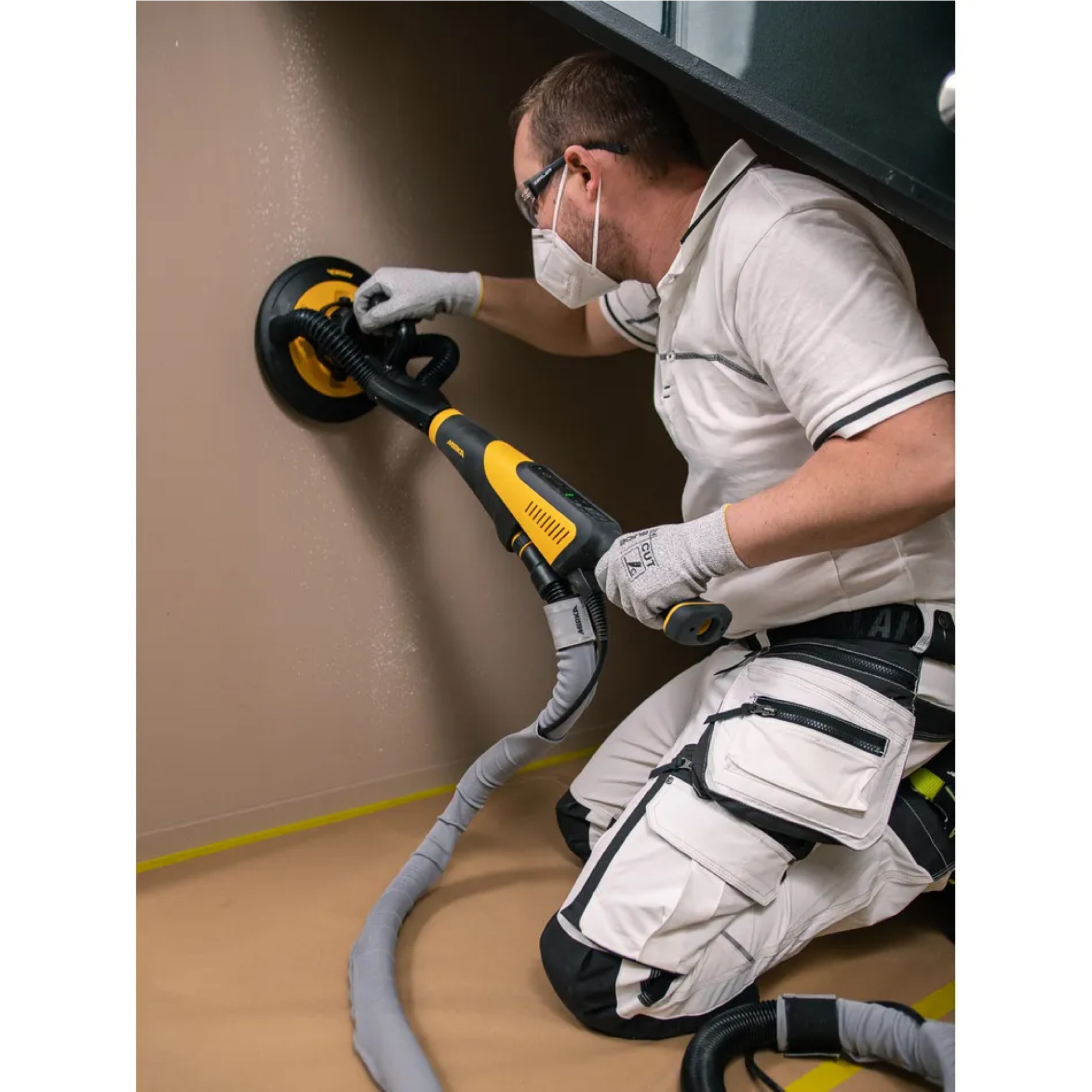 Uma lixadora de parede e teto sem escovas exclusiva. O peso leve (apenas 3,2 kg) permite que a lixadora seja utilizada durante períodos mais longos com maior conforto, e a ampla flexibilidade da cabeça de lixagem ajuda o operador a alcançar superfícies num ângulo melhor e permite uma posição de trabalho mais ergonómica.