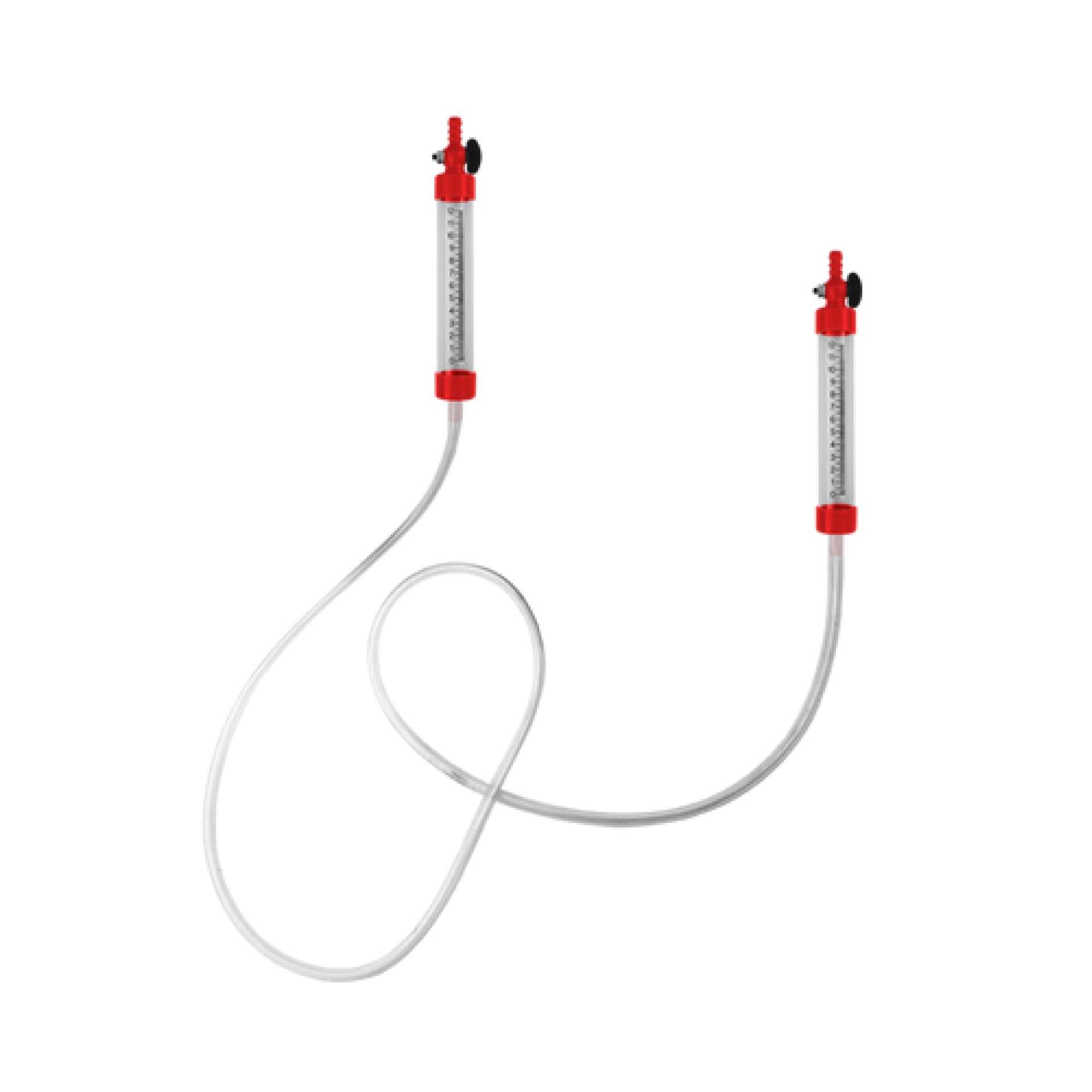 Dispositivo médico com duas buretas e tubo flexível branco