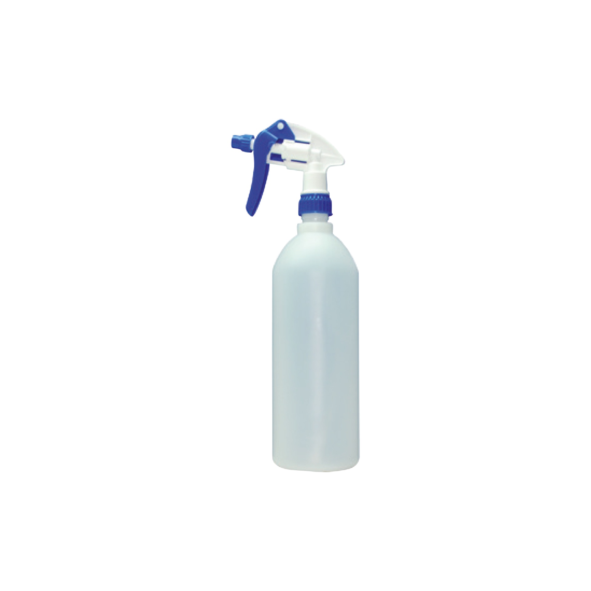 Frasco pulverizador plástico translúcido com gatilho azul e branco