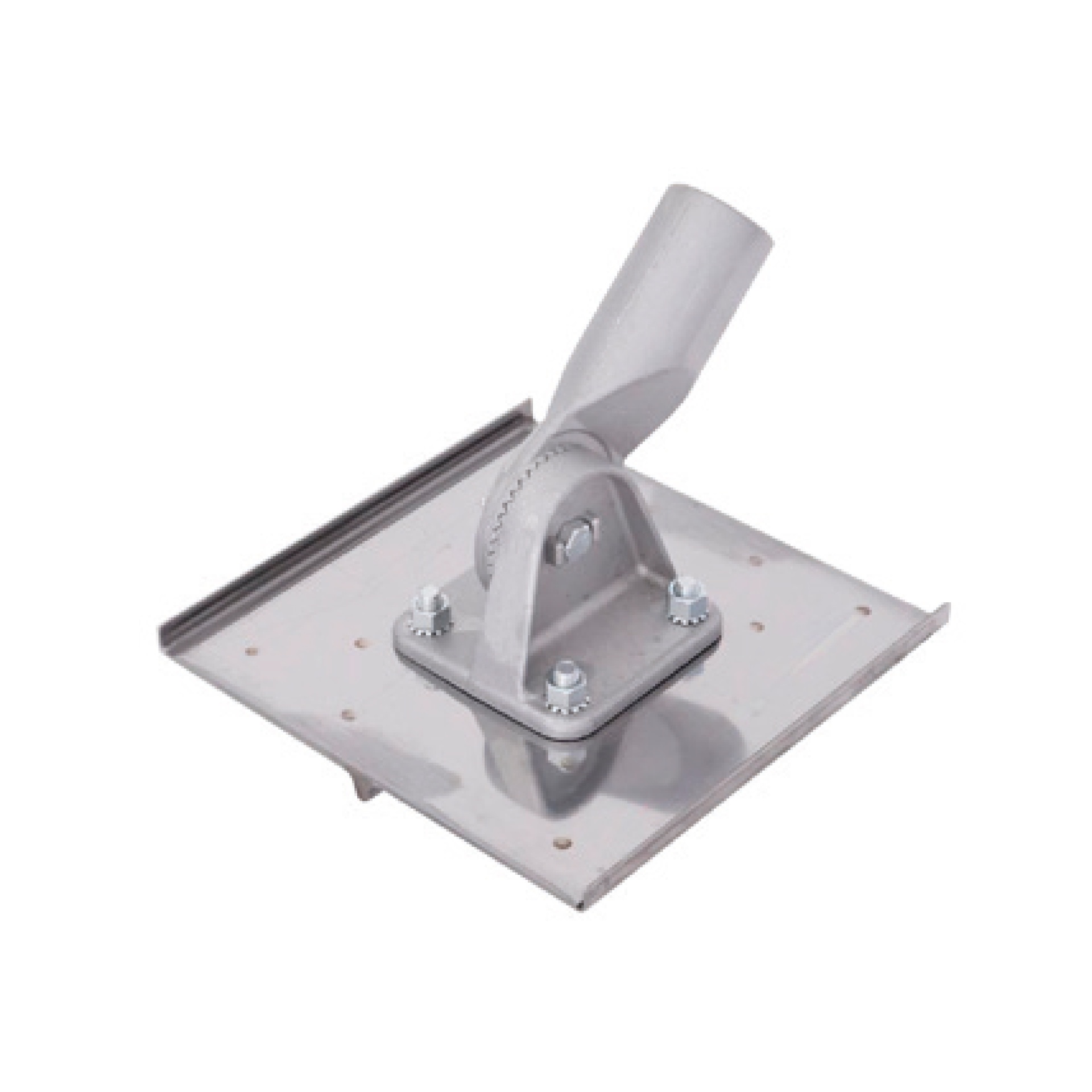 Suporte metálico prateado com base quadrada e tubo inclinado
