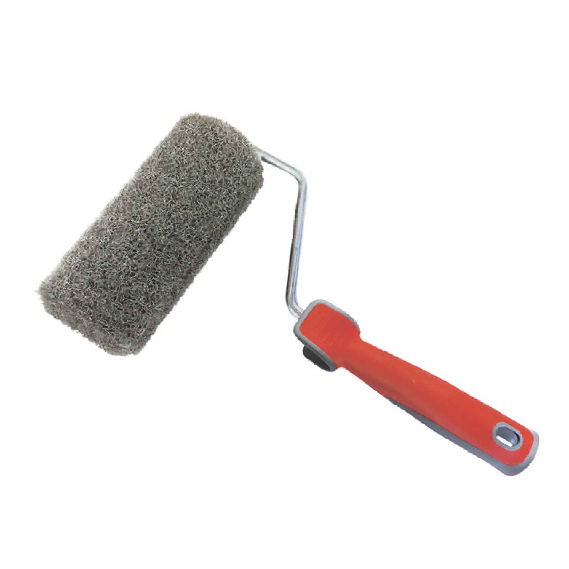 Rolo de pintar com cabo vermelho e espuma cinza texturada