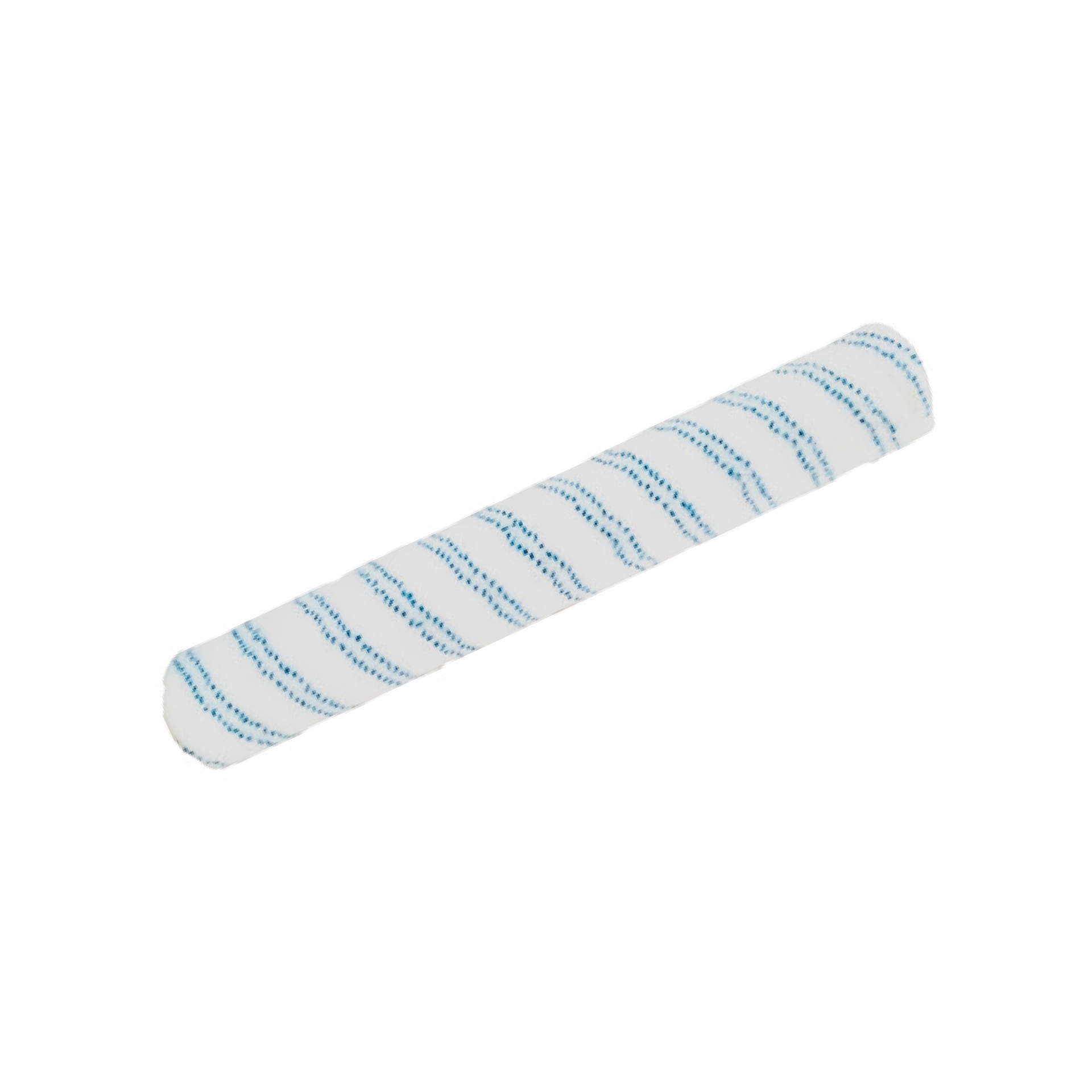 Rolo de pintura branco com riscas azuis em fundo branco