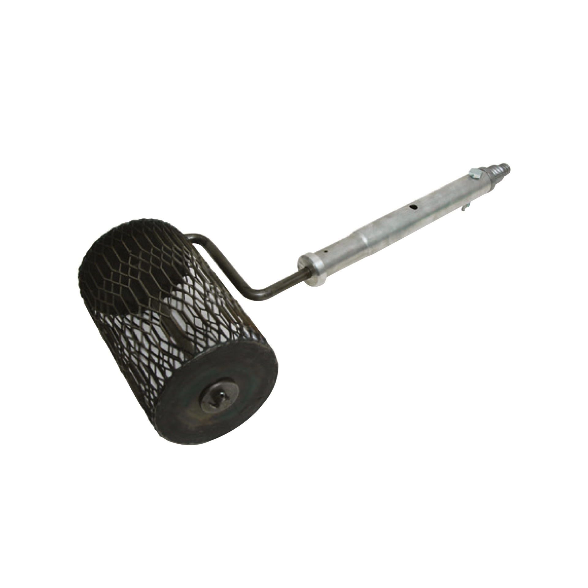 Rolo de pintar metálico com malha preta e pega prateada