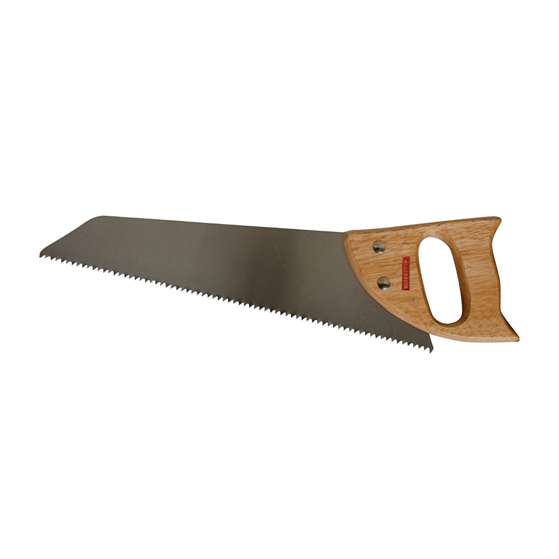 Serrote com lâmina serrilhada e pega de madeira clara