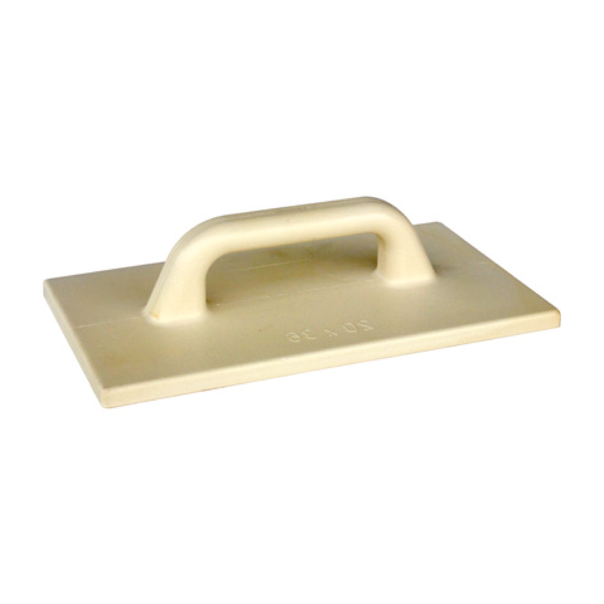 Esponja para gesso retangular bege com pega em plástico.