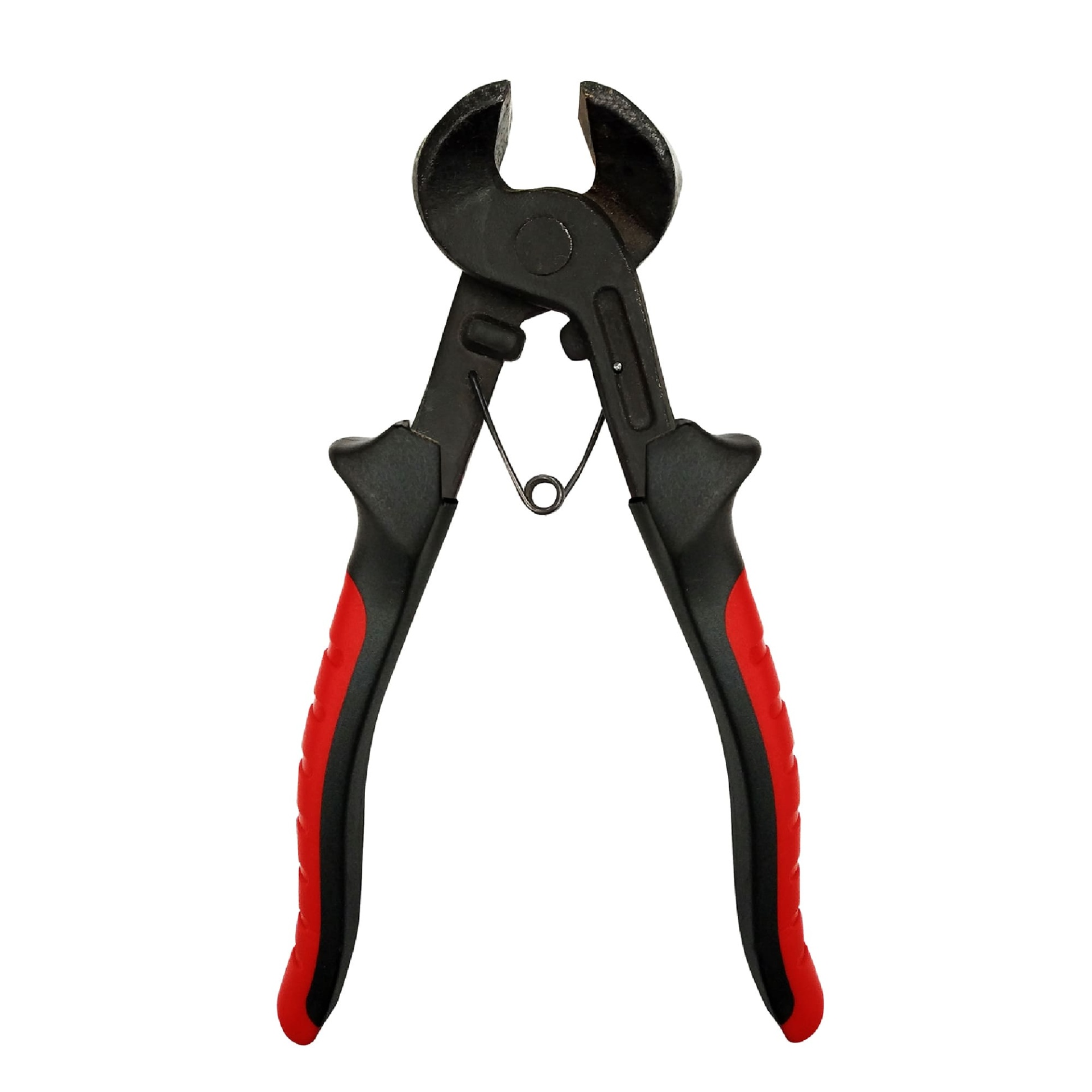Alicate de corte com cabo preto e vermelho e lâminas de aço