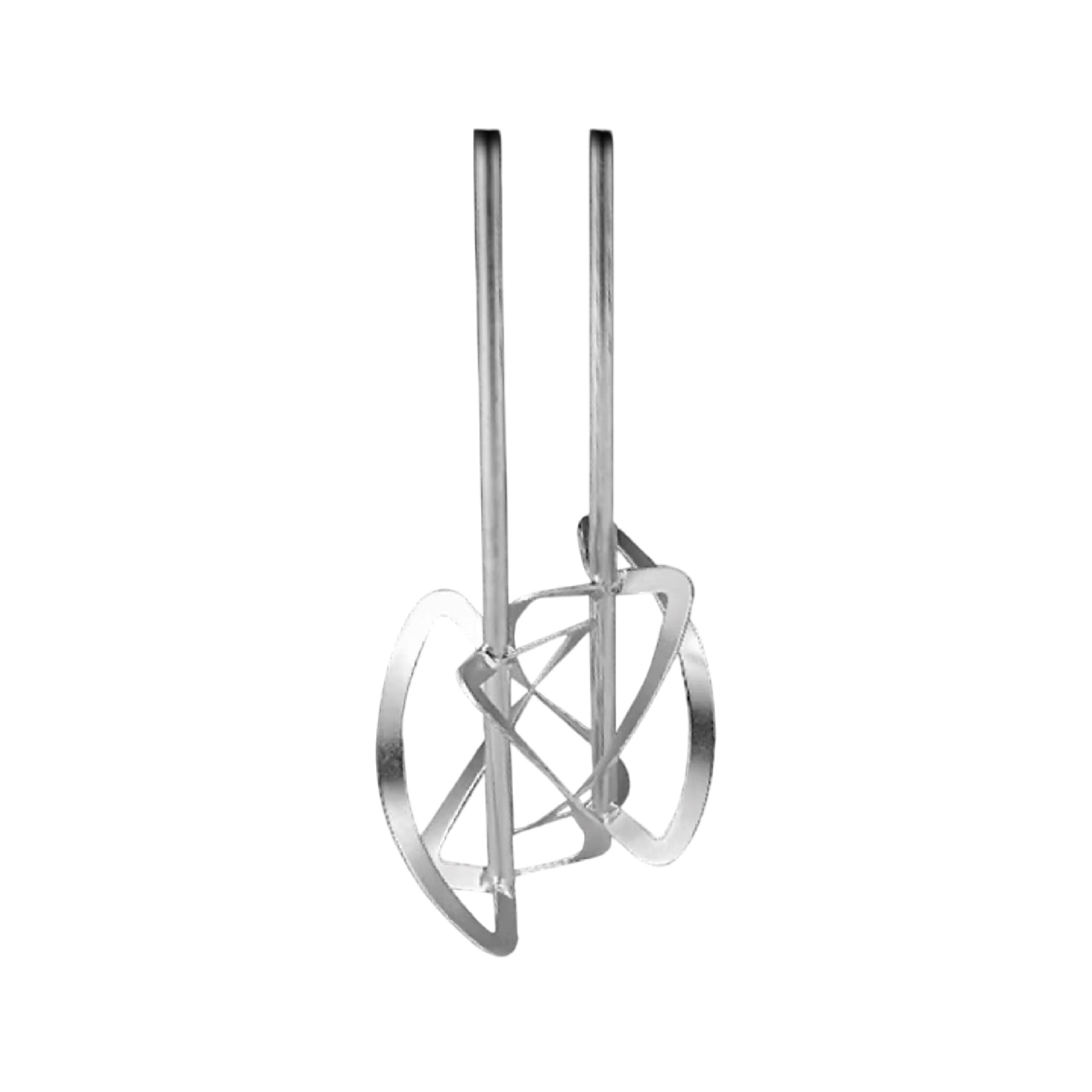 Misturador de argamassa metálico prateado com hastes verticais.